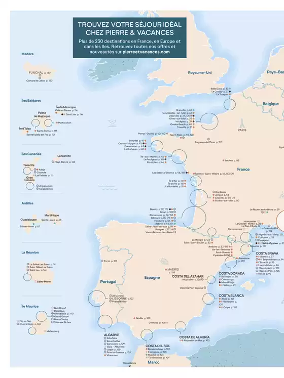 Sur Tiendeo, nous vous fournissons toutes les informations à jour sur Pierre & Vacances, telles que les horaires d'ouverture, les offres exclusives et l'emplacement exact du magasin à port du Crouesty. De plus, vous aurez accès aux derniers catalogues de Pierre & Vacances, où vous pourrez découvrir les promotions les plus récentes et profiter de grandes réductions sur les produits de Voyages pour vos achats à Arzon.