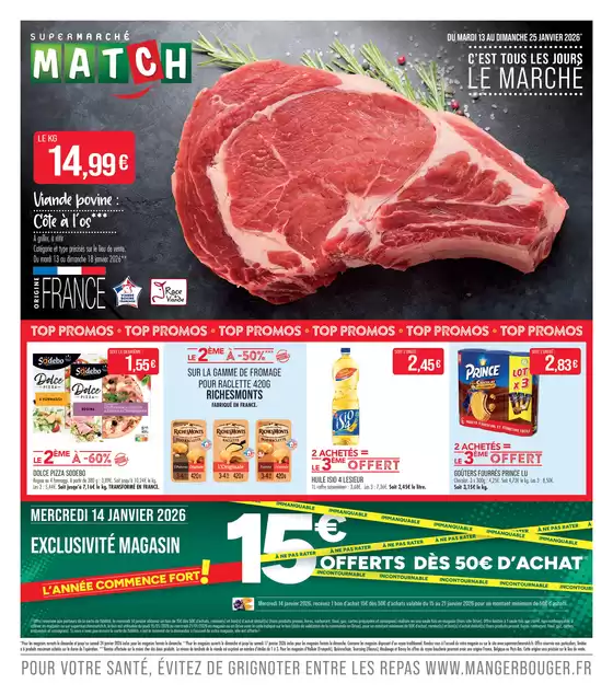 Ne manquez pas l'occasion de visiter la boutique Supermarché Match à Avenue des Martyrs de la Résistance pour une expérience d'achat complète. Nous vous invitons à explorer les promotions que nous avons pour vous ce janvier et à rester informé des meilleures offres de Supermarché Match à Charleville-Mézières. Venez nous rendre visite et commencez à économiser dès aujourd'hui !