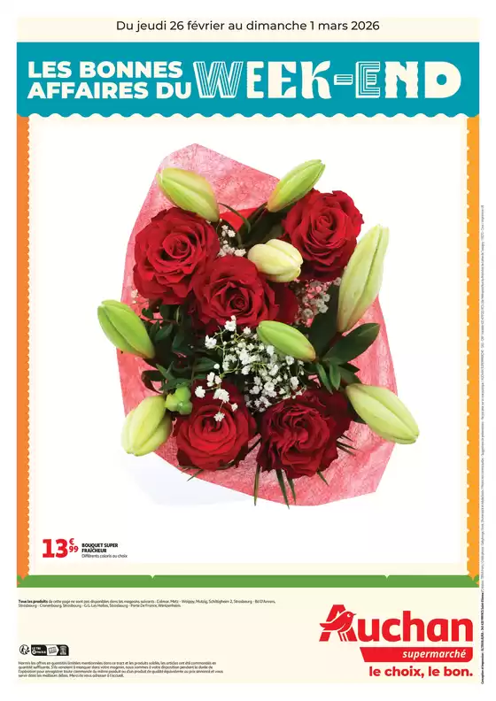 Sur Tiendeo, nous vous fournissons toutes les informations à jour sur Auchan Supermarché, telles que les horaires d'ouverture, les offres exclusives et l'emplacement exact du magasin à Zac De La Croix Bellejame - N 446. De plus, vous aurez accès aux derniers catalogues de Auchan Supermarché, où vous pourrez découvrir les promotions les plus récentes et profiter de grandes réductions sur les produits de Supermarchés pour vos achats à Marcoussis.