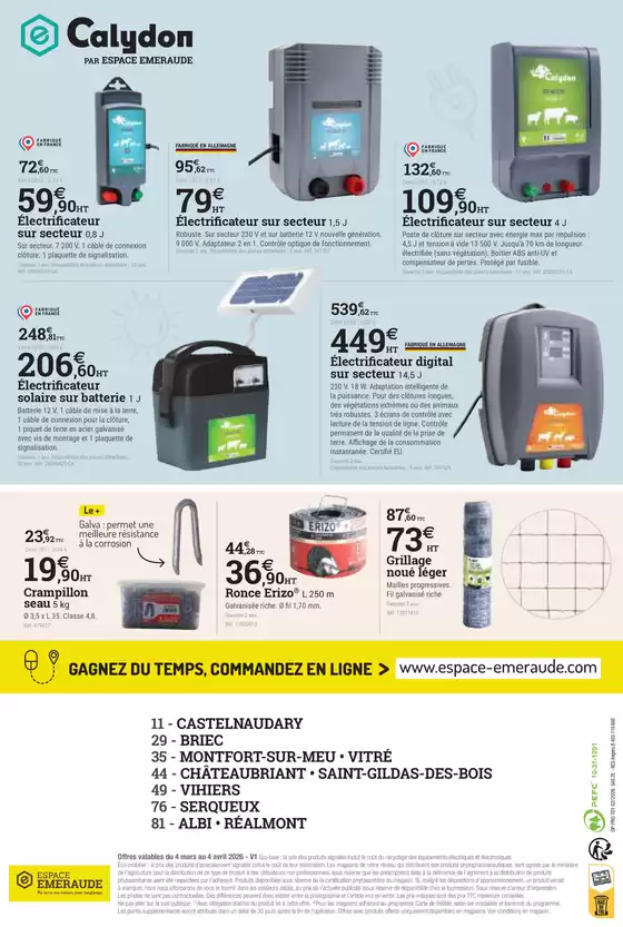 Bienvenue dans la boutique Espace emeraude sur Tiendeo, où vous pourrez découvrir les meilleures offres, promotions et catalogues de cette marque renommée dans le secteur de Bricolage. Notre magasin physique est situé à Rue de l'Herminette ZA Les Tardivières, Montfort-sur-Meu, et vous y trouverez une large gamme de produits de qualité qui vous permettront de réaliser des économies tout au long de mars 2026.