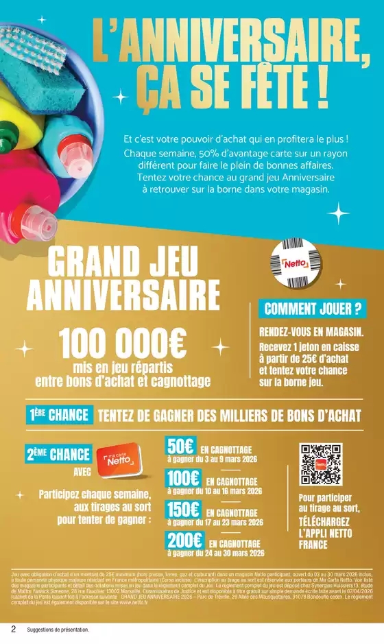 Ne manquez pas l'occasion de visiter la boutique Netto à 81 Av Edouard Herriot pour une expérience d'achat complète. Nous vous invitons à explorer les promotions que nous avons pour vous ce mars et à rester informé des meilleures offres de Netto à Troyes. Venez nous rendre visite et commencez à économiser dès aujourd'hui !
