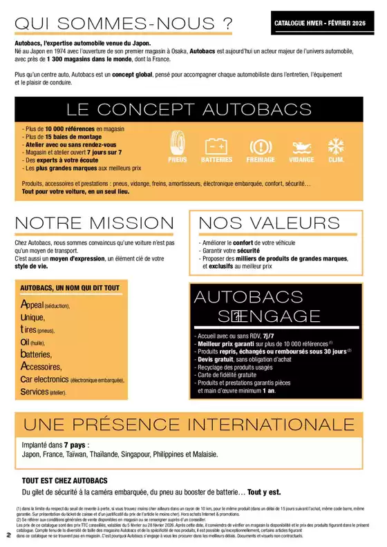 Profitez des avantages de la carte de fidélité Autobacs ! Avec elle économisez ! La carte est gratuite et vous permettra de cumuler des points au cours de chaque achat. 1€ = 1 point. 2 fois par an vous pourrez les transformer en bons dachats (100 points pour 3 euros, 2000 point pour 100 euros...). Les bons dachat sont générés automatiquement et vous sont envoyés par courrier au mois de mai et au mois de novembre et ils sont valables pendant 6 mois. Vous pourrez aussi bénéficier doffres exclusives avec promotion spéciales, événements VIP...